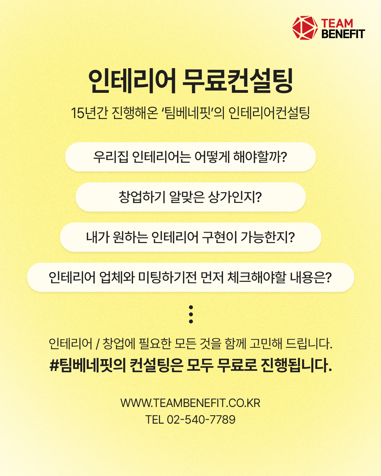 # 저희 TEAMBENEFIT은 직접시공하지 아니하며,